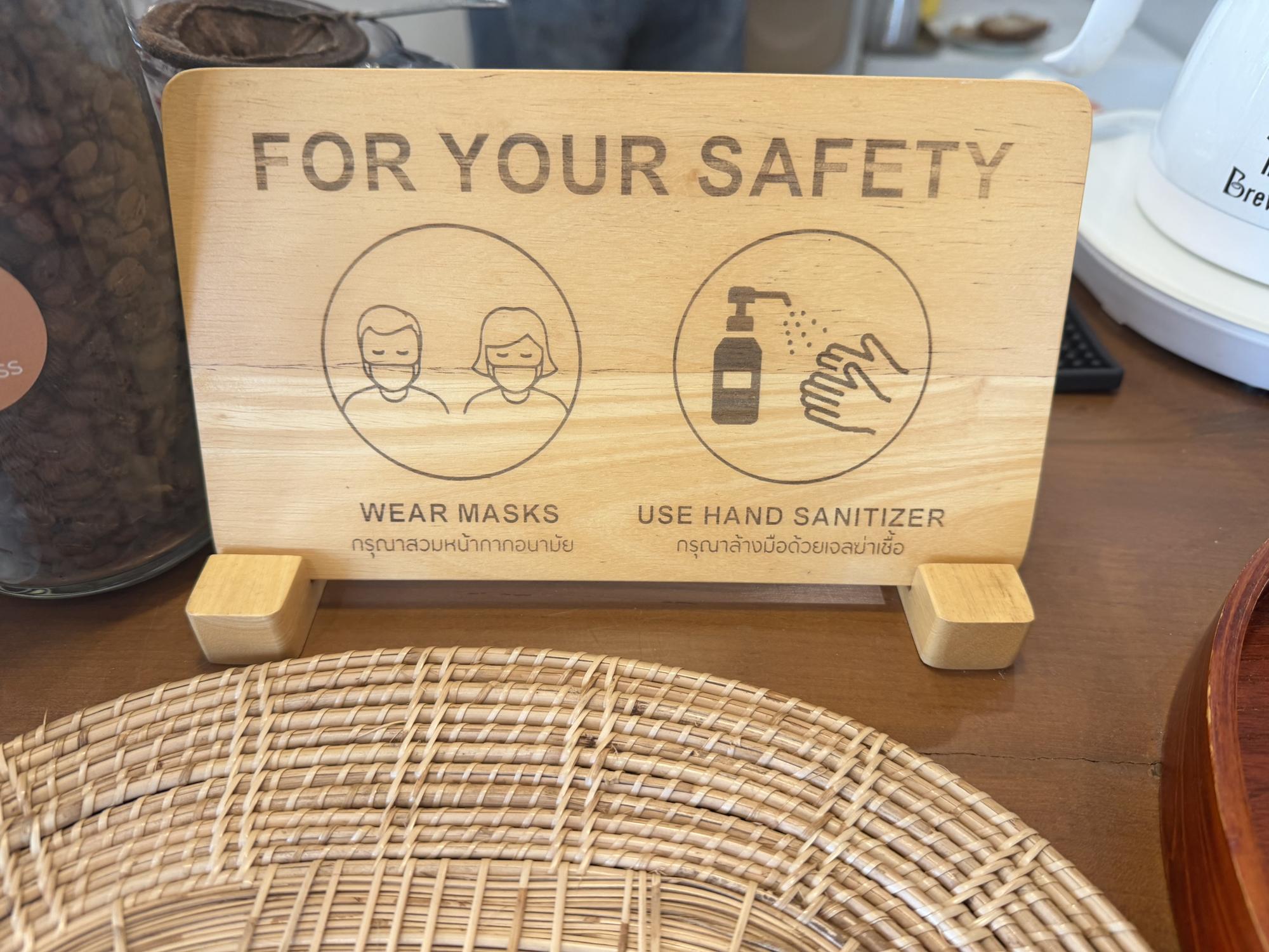 FOR YOUR SAFETY WEAR MASKS กรุณาสวมหน้ากากอนามัย USE HAND SANITIZER กรุณาล้างมือด้วยเจลฆ่าเชื้อ
